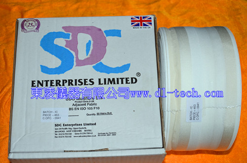 SDC DW多纖維布用于顏色堅牢度的評級。 由六種纖維組成:醋酸纖維、棉、尼龍、滌綸、丙烯酸纖維和羊毛 適用標準:ISO EN BS DIN GB M&S 等等. 產品尺寸和包裝: 10厘米寬,每盒50米。 10厘米寬,每盒10米。