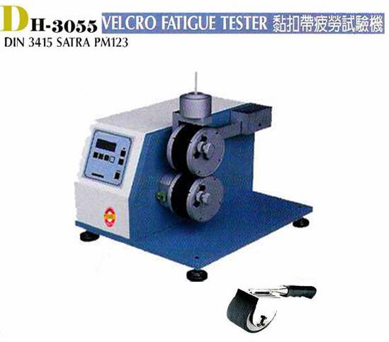 本機系用來測試黏扣帶(魔術貼)在經過若干次的黏貼及剝離動作后,是否仍具有緊密黏扣的特質。測試時,先以機臺做一定次數的黏及剝離動作,然后取下試件,截成75x20 mm 的尺寸,并以輾壓滾壓試件,再利用拉力機求其黏貼力與黏貼強度。