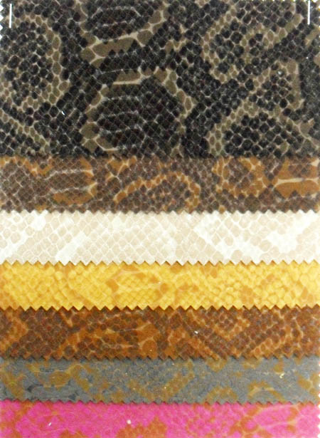 公司現已開發出不同款式的中高檔的各種植絨:鹿皮絨、真皮絨、西施絨(單面/雙面)、蛇紋、豹紋、斑駁紋,各種水晶、珠光、壓花、粉擦、擦色、擦焦、瘋馬、摸色PU等2000多種特殊面料。廣泛用于服裝、鞋帽、箱包、家私、玩具、沙發及其它工業用布等,深受客戶青睞和好評。已同歐美FAT、FACE、ALDO、SKECHERS.-佐丹奴等多家貿易公司建立服務合作關系,合理的價格贏得了客戶的信賴。