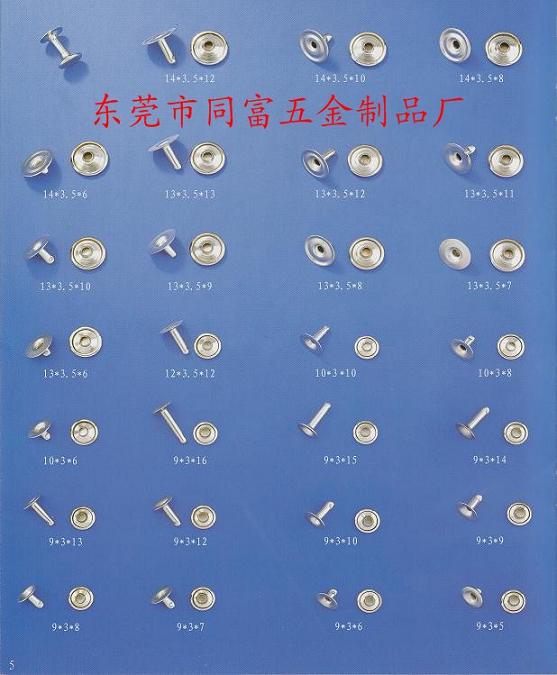 鞋類五金塑膠配件:雞眼、塑膠雞眼,腰形雞眼、鋁雞眼,空心釘、鉚釘、中空釘、線圈、鋅合金飾扣、登山扣、雙孔登山扣,虎骨扣;