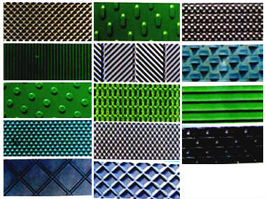 花紋形式:鉆石花紋、波浪花紋、倒三角花紋、樓梯格花紋、直條花紋、草花紋、魚網花紋、蛇皮花紋、人字型,凹坑型,U型,條狀花紋,粒狀花紋,扇形花紋