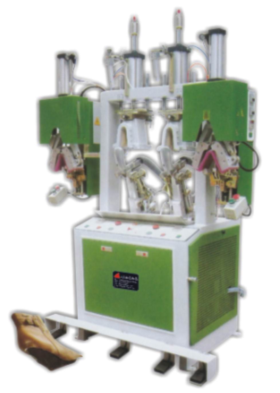 本機適用于各男、女鞋、運動鞋,鞋面后踵:冷熱之定型,以及熱熔膠后踵外緣內折之定型。