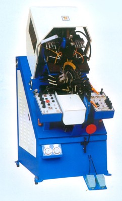 l??????? 壓頭一次壓采二種壓力裝置可供選擇 , 便于各種不同的鞋材使用 , 使鞋子的結幫過程中皮面與刀模的壓著貼合能力有最佳配合 . 更使結幫后幫腳平整美觀 , 保證結幫質量 .