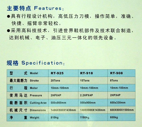 搖臂式油壓裁斷機RT-925 918 908
