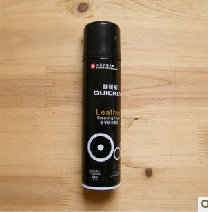 距離5cm左右噴與皮革表面,自然分解3分鐘后,用海綿刷清潔污漬,用濕毛巾清除殘留液,再用干凈毛巾擦拭后晾干即可進行下一步護理。