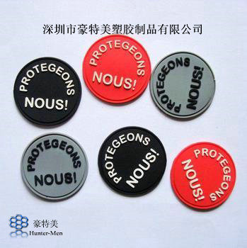 可將PVC材質的商標電壓或者熱壓在服裝、箱包等上。