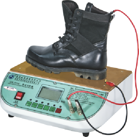 與一定的電壓通過由試樣,鋼珠和銅板組成的封閉線路后,測量其電阻量,以此值是否落在抗靜電鞋的絕緣電阻范圍內(nèi)來評估測試試樣是否具有抗靜電性能。