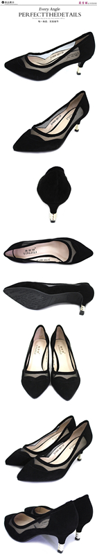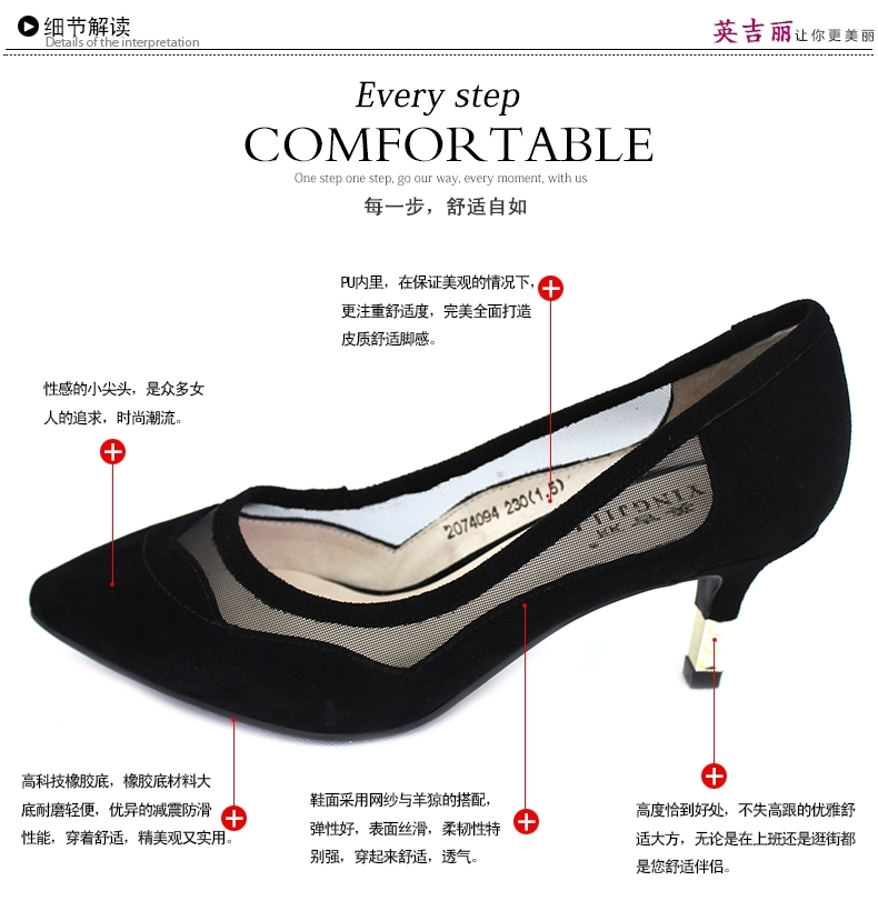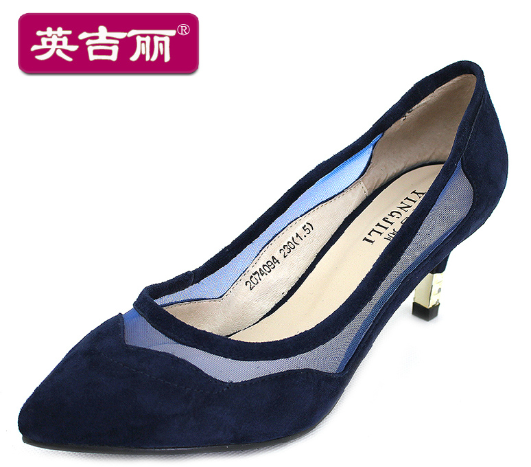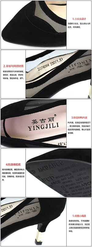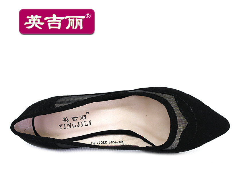 英吉麗春夏新款尖頭淺口細跟網紗透氣鏤空女單鞋 3074094