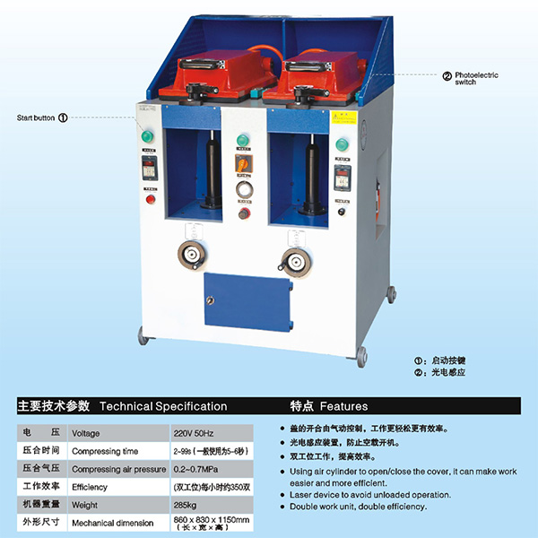 氣動(dòng)雙工位蓋式壓合機(jī) 恒豐XQYH-2005-2氣動(dòng)雙工位蓋式壓合機(jī)