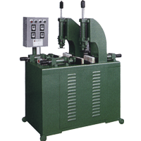 本機(jī)專(zhuān)用于鞋底雙邊與EVA壓著貼合,本機(jī)型為油壓動(dòng)作系統(tǒng),上方油壓缸先壓下固定鞋子,然后雙邊油壓缸同時(shí)動(dòng)作,將鞋底雙邊壓緊。