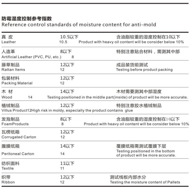 iHeir防霉測試儀也叫濕度測試儀,它是非常精準的含水率測量儀器,適用于皮革、竹木、紡織品、紙制品、塑料制品在1%-39%范圍內的水分,客觀的評估該材料發霉的風險,其測量方法十分簡單,是工業產品防霉的首選判斷儀器。
