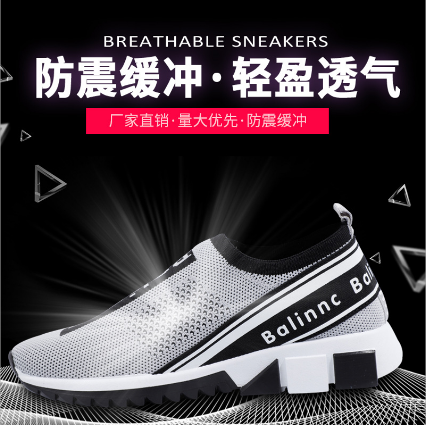 2019飛織夏季老爹女鞋 學生透氣運動襪子鞋 休閑防滑跑步套腳鞋