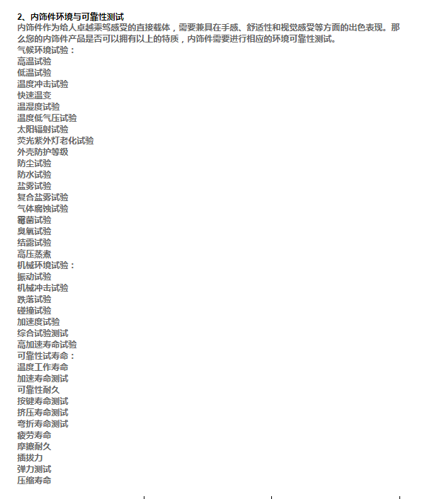 2、內飾件環境與可靠性測試