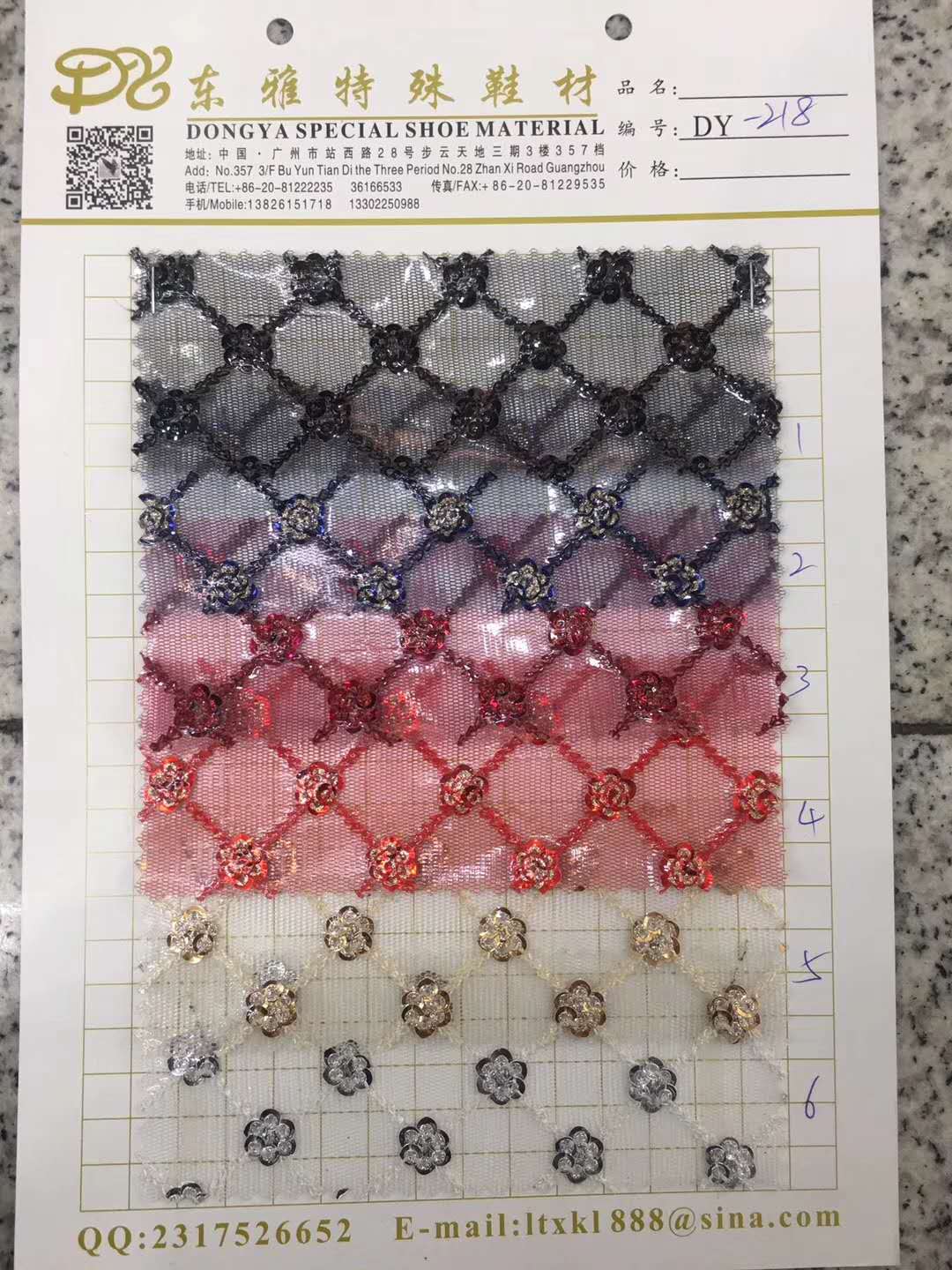 地址:中國廣東省廣州市越秀區站西路39號新濠畔鞋材批發廣場二樓14通道E57檔