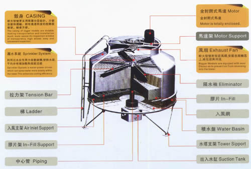 廣林牌冷卻塔采用優質PVC散熱膠片、且設計形狀更有效地延長高溫水跟冷卻風接觸時間,所以冷卻效果果特佳。外殼底盤采用優質高強度玻璃纖維制成,外形美觀,防腐及抵抗外界惡劣環境能力特強,轉動及接合部分采用優質原材料加工,大大提高使用壽命及接合強度,客服部提供24小技術及維修售后服務,將大大提高工作效率。