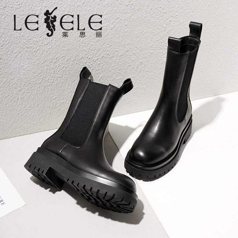 LESELE|萊思麗冬季新款時尚優雅厚底女鞋 切爾西機車女靴LD5473
