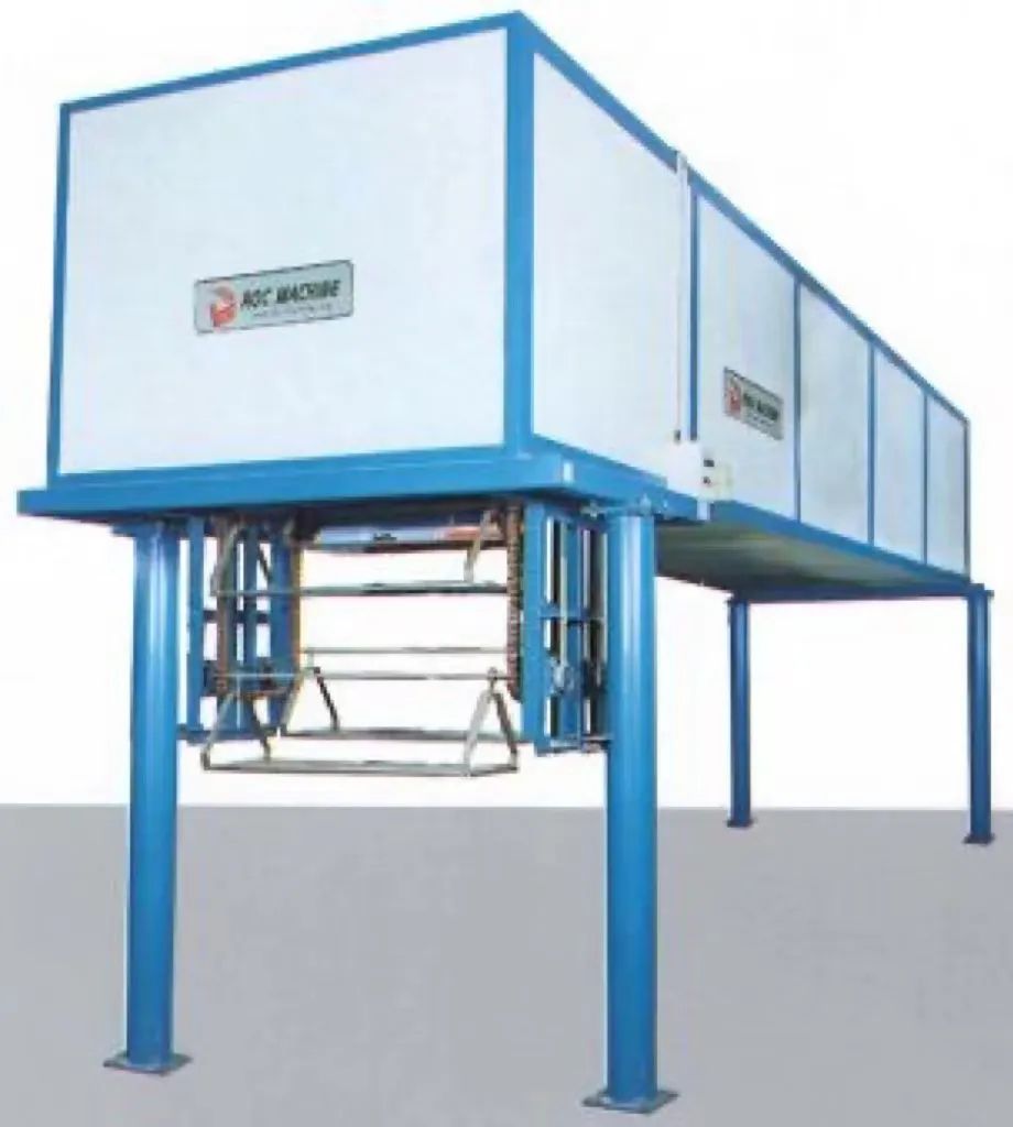 架空式冷凍定型機專為節省廠房使用面積,充分利用上空間而設計,不占地方,操作方便,溫度及速度可配合作業問題調整,可為鞋廠的流水線量身定做。