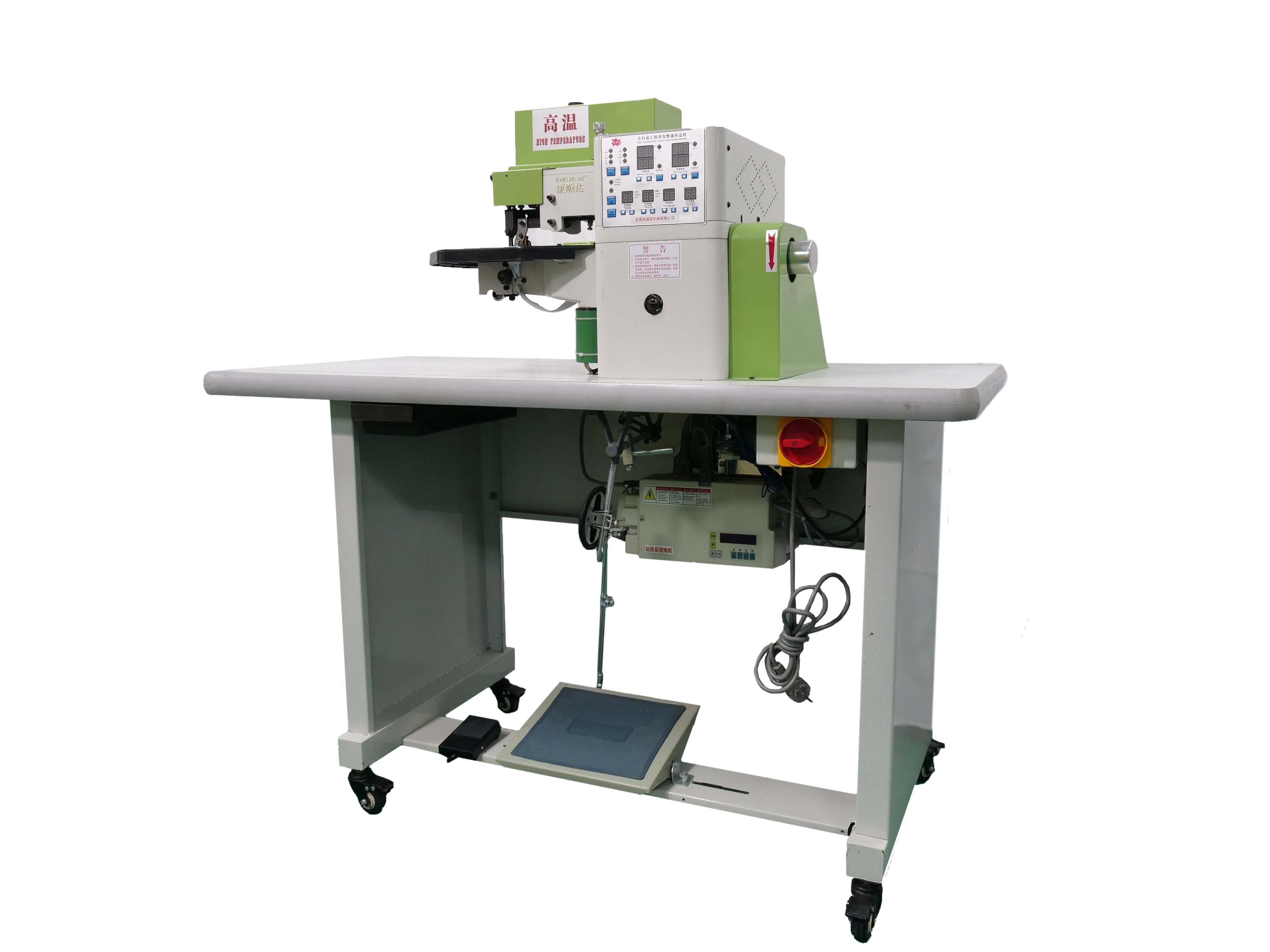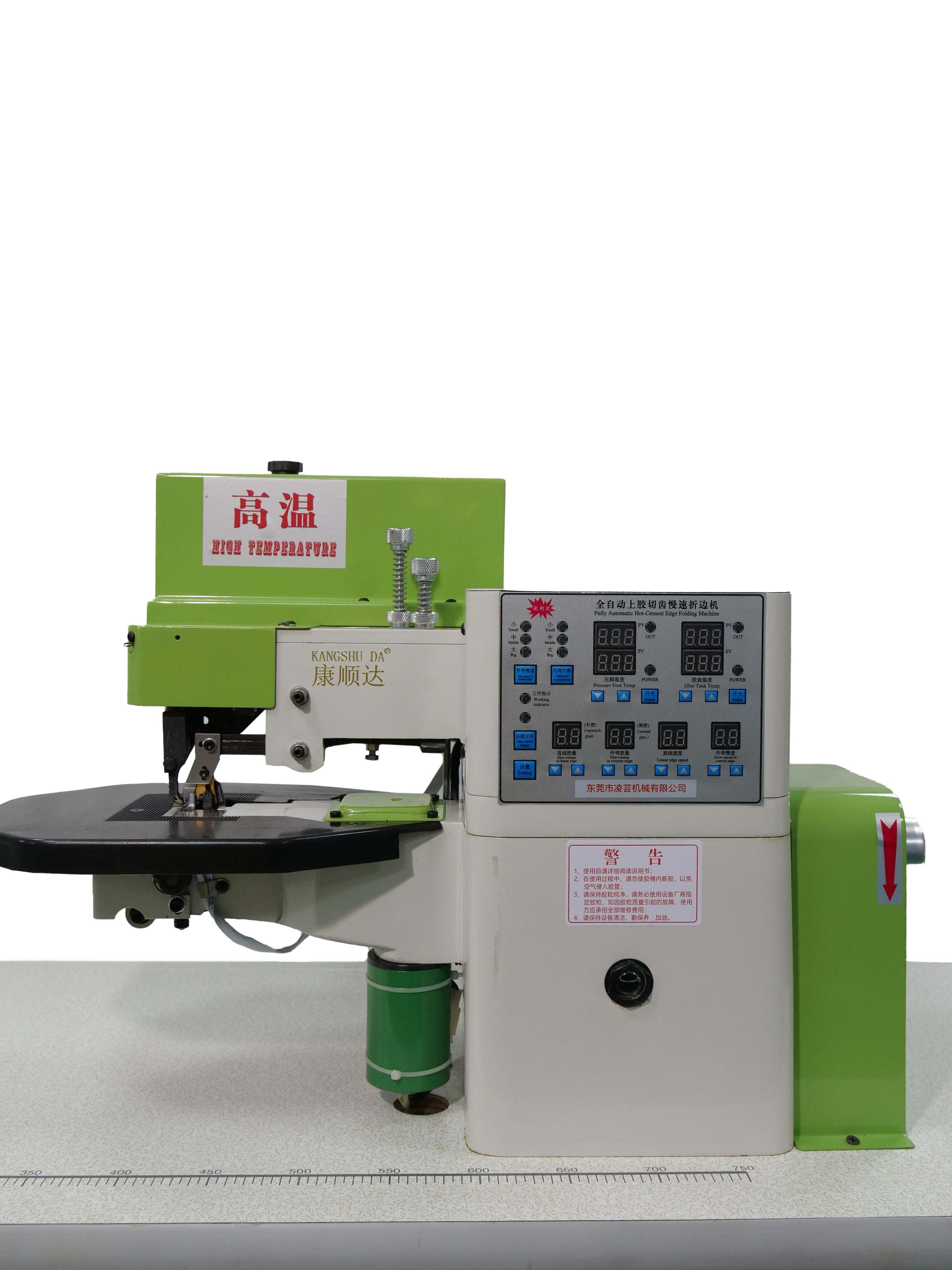 適用于高檔制鞋業,制包業,等皮制品的PVC,PU,天然皮,人造皮,帆布等材料,使用熱熔膠折邊作業。