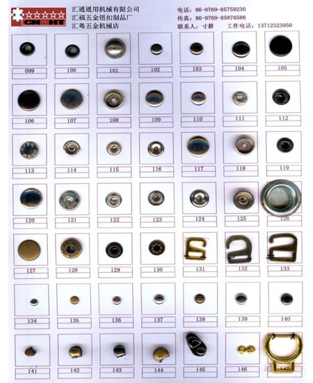 主要生產(chǎn)雞眼扣、爪珠扣、撞釘、四合扣等各種五金飾扣。