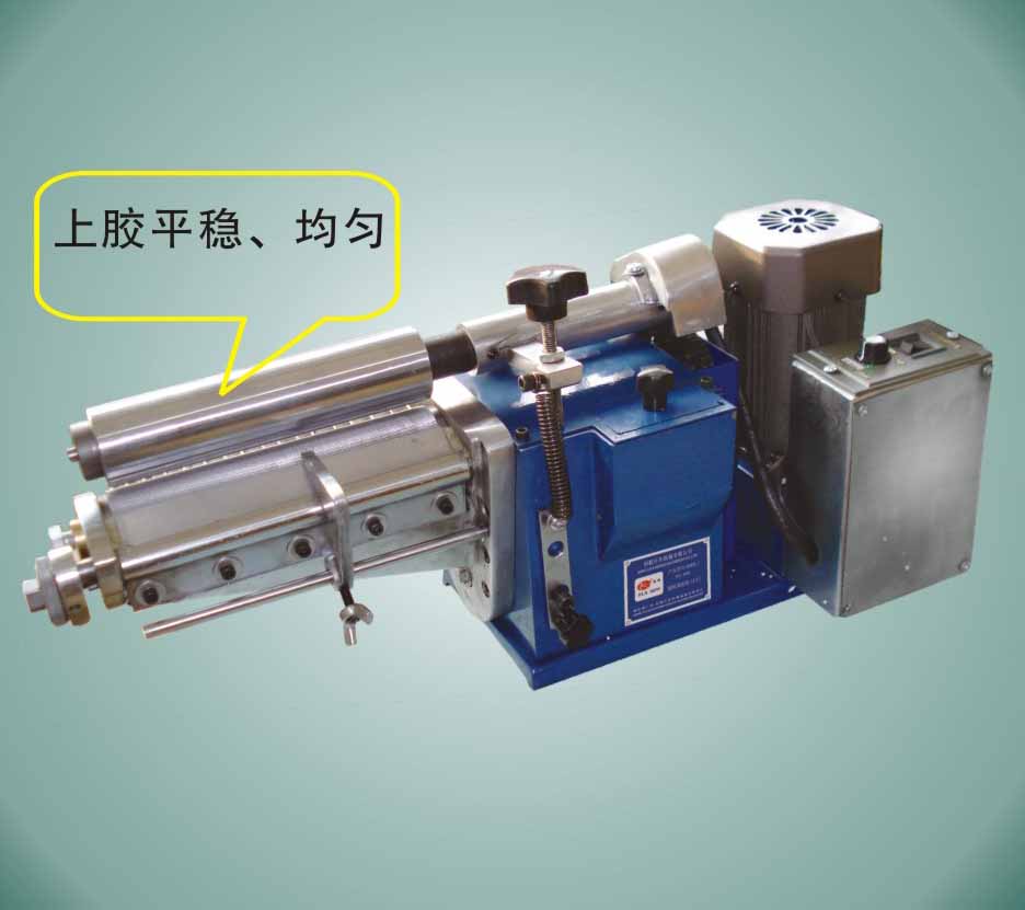 適用于厚度0.3mm以上,一般皮件、包鞋跟皮、中底、鞋墊、紙板、運動器材或各種軟性材質上膠使用。強力膠自動循環裝置及密閉擰膠室,不愁強力膠散發或干枯。上膠量可隨意調整均勻適中,確保粘著力平均,增加拉力,提高產量。