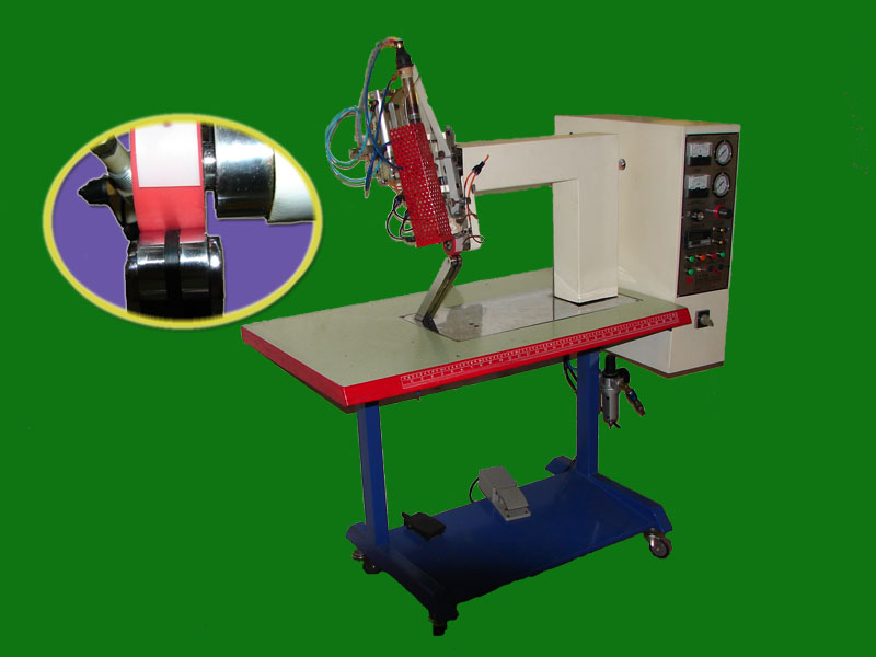 此機器用于給針車的針孔處上防水貼條的專用機器,此機器全部采用進口的零配件,氣體的溫度穩定,運行速度穩定,做出的產品品質穩定,不良率低.