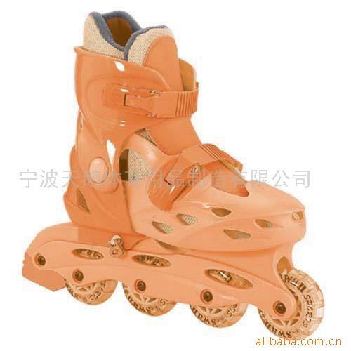 本公司生產的本款全塑后伸縮直排旱冰鞋,結合國內外先進生產技術,經本公司工程技術人員精心改良,前后鞋板采用分體式結構,可根據用戶的腳型大小自由調節尺碼。尺碼分為S號(29—34碼)、M號(35—38碼)、L號(39—42碼)。鞋輪采用進口PU和PVC原料制造,在光亮度、色彩度、耐磨性等方面都不亞于進口同類產品。顏色為:銀灰、寶藍、粉紅、珠光寶藍、黑紅、藍黃、綠黃、梅紅等,可滿足不同客戶的需要。