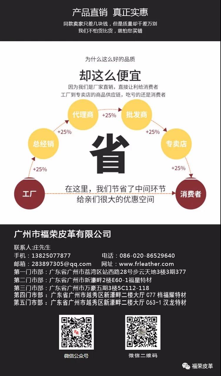 廣州福榮皮革有限公司成立于2012年,主營各種高檔特殊格利特及閃光特殊面料,公司所經(jīng)營產(chǎn)品全部達到環(huán)保標(biāo)準(zhǔn),適用于沙發(fā);箱包;服裝;以及家居裝潢等,特別在國內(nèi)內(nèi)銷市場時裝鞋,婚禮鞋,晚宴鞋領(lǐng)域有著巨大的優(yōu)勢,本公司擁有專業(yè)的開發(fā)和內(nèi)外銷團隊每月都有多個新產(chǎn)品上市,可配合客戶開發(fā);我們與意大利米蘭;法國巴黎等多家時尚機構(gòu)合作開發(fā),本著引領(lǐng)時尚潮流永遠走在流行最前線的原則,提供市場最新產(chǎn)品來服務(wù)廣大客戶,迎接四海賓朋!!!