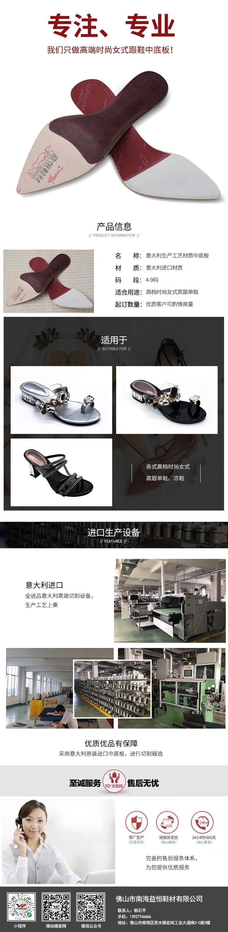 公司介紹:佛山市南海益恒鞋材有限公司創(chuàng)辦于2014年,座落在佛山市南海區(qū)里水鎮(zhèn),公司投資1200多萬從意大利引進(jìn)全套的自動化生產(chǎn)設(shè)備,全部選用意大利Bartoli與Texon公司的高端進(jìn)口紙板,專業(yè)生產(chǎn)高端定型中底,產(chǎn)品環(huán)保達(dá)到美國與歐盟的環(huán)保檢測標(biāo)準(zhǔn),日產(chǎn)量達(dá)到15000多雙,成立至今與國內(nèi)眾多高端品牌均有合作,用工匠精神去生產(chǎn)產(chǎn)品,并持續(xù)創(chuàng)新引領(lǐng)行業(yè)。