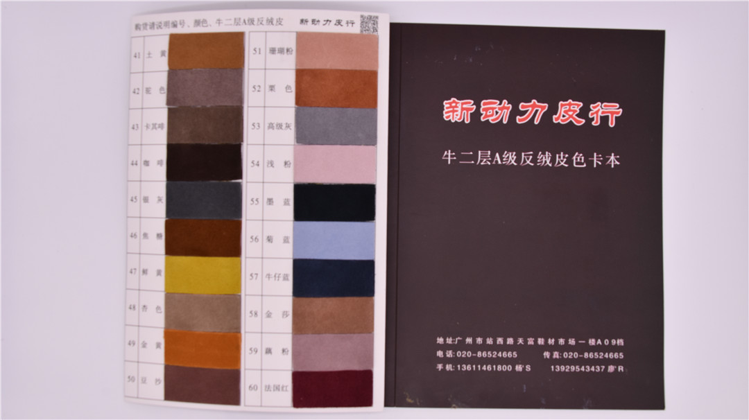 廣州市新動力皮行成立于2003年,公司專業生產經營:牛二層反絨皮、高絲光反絨、水洗反絨、迷彩反絨、絲綢貼皮、納帕紋貼皮、小牛紋貼皮、磨砂貼皮、壓摔紋貼皮、金屬系列貼皮、水染牛里皮、牛三層里皮、專業性強,貨源充足,品種齊全,歡迎各界客戶現貨選購、來板訂做。