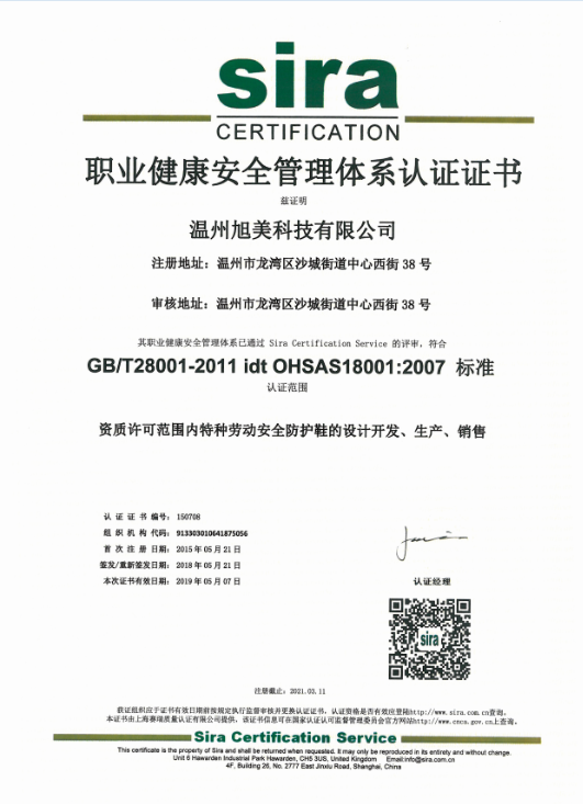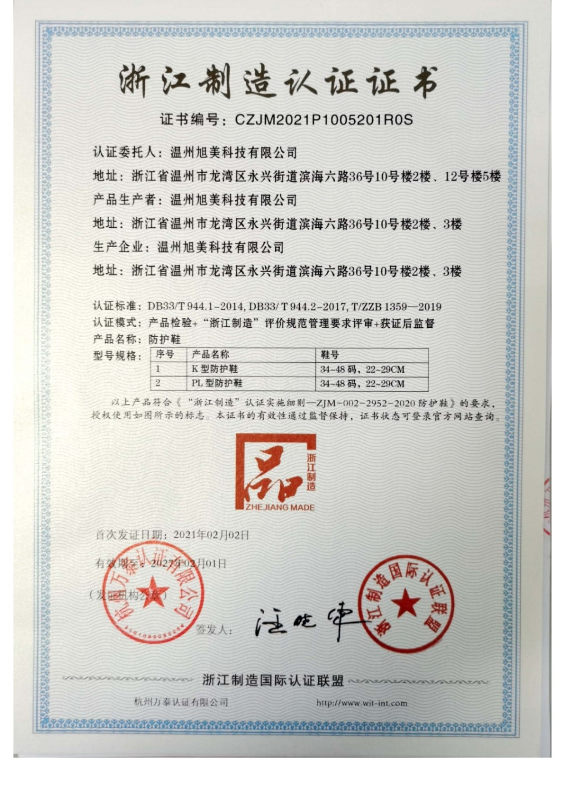 旭美公司總經(jīng)理項有春現(xiàn)為中國紡織品商業(yè)協(xié)會安全健康防護用品委員會副會長、協(xié)會專家委員會足部防護類專家、浙江安全健康防護用品協(xié)會副會長。自2015年起,溫州旭美連續(xù)三年榮登中國勞動防護50強企業(yè)榜單、公司旗下兩大安全鞋品牌“大盾”、“利玫”榮獲“2017年第三屆浙江勞保行業(yè)質(zhì)量誠信產(chǎn)品”稱號、2017年被認(rèn)定為“浙江省科技型中小型企業(yè)”、2018年被評為“第四批全國勞保行業(yè)推薦品牌”、 2018年溫州市安全生產(chǎn)監(jiān)督管理局頒發(fā)安全生產(chǎn)標(biāo)準(zhǔn)化企業(yè)證書。