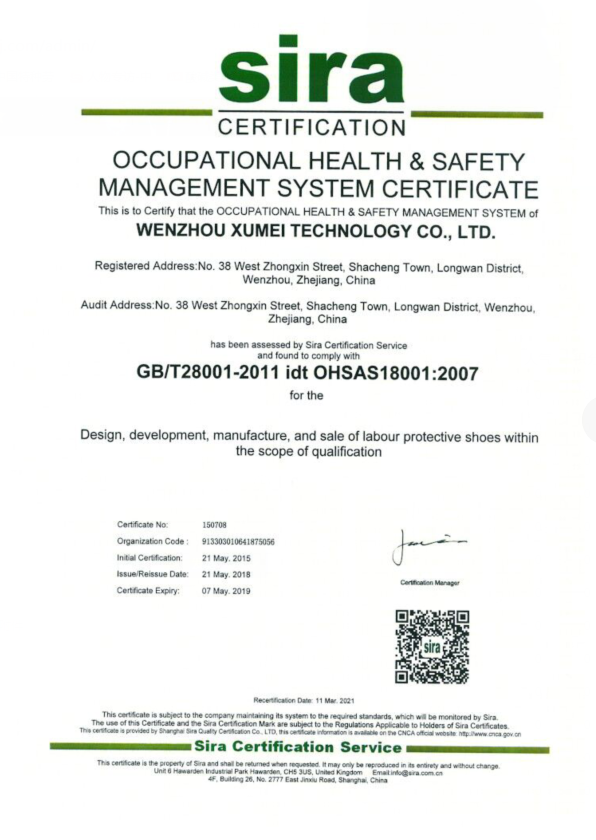 同時公司更加注重新產(chǎn)品研發(fā),利用3D腳模掃描儀,對安全鞋尺寸、準(zhǔn)確度以及舒適度起到了很好的作用,并取得多項國家專利,研發(fā)的大底如PU/PU、PU/橡膠、超輕橡膠發(fā)泡大底均能適應(yīng)牛皮、牛反絨、牛巴戈、納帕皮、超纖、網(wǎng)布、PU革等各種材料,智能安全鞋、香鞋、超輕鞋等一系列專利產(chǎn)品走在行業(yè)技術(shù)的前沿,防滑等級SRC。并引進先進的檢測設(shè)備,建立完善的質(zhì)量管理體系,目前已通過ISO9001質(zhì)量管理體系、ISO14001環(huán)境管理體系、OHSAS18001職業(yè)健康安全管理體系,獲得全國工業(yè)產(chǎn)品生產(chǎn)許可證、“CE”國際產(chǎn)品質(zhì)量認(rèn)證、國家“LA”特種勞保防護用品安全標(biāo)志。公司與Beta、Upower、Dickies、Dunlop、世達、霍尼韋爾、中核集團、三一重工、中石油、國電等國內(nèi)外知名企業(yè)都有合作。自主品牌大盾、利玫足跡更是遍布全國各省、市、自治區(qū),年產(chǎn)量達100萬雙,年銷售額超1億元。近年來,公司大力拓展業(yè)務(wù),曾先后參加德國杜塞爾多夫A+A勞保展、參加香港“安全鞋·工業(yè)鞋企業(yè)行業(yè)專題交流會”、參加2018年新加坡勞保展OS+HA。