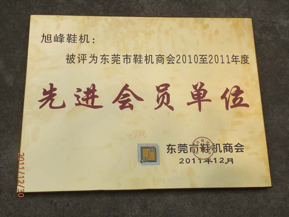 旭峰榮獲2010-2011度鞋機(jī)商會(huì)先進(jìn)會(huì)員單位