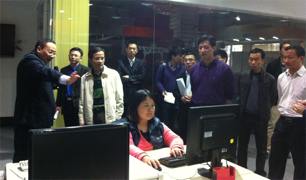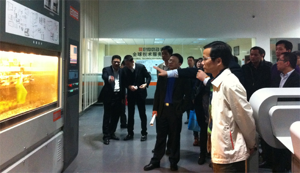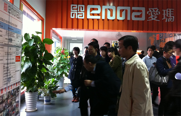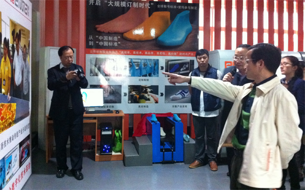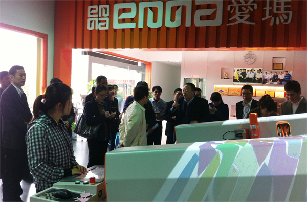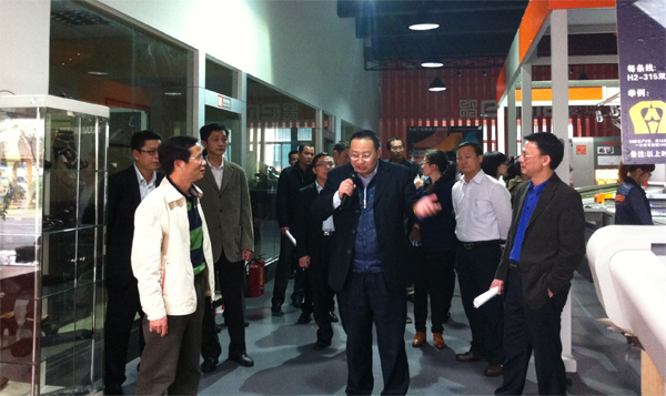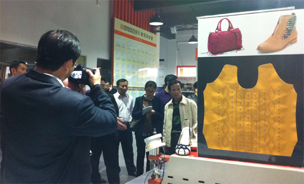 領導們觀看了亞洲第一臺平板式雙刀頭電腦皮革切割機、2012版智能化排版系統、CAD設計軟件、時尚元素輔助生產設備等演示,得知愛瑪方式能比傳統生產方式大幅度節省人工、原材料等綜合成本時,表示贊許。