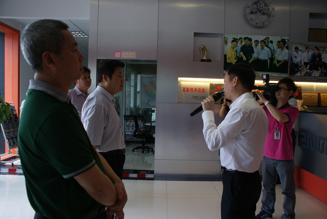 4月25日上午,政府耕地保護目標履行情況考核檢查組鄔公權書記等領導一行在南城區府錢書記以及高盛科技園相關領導陪同下蒞臨愛瑪參觀考察,愛瑪董事長王煒棠率公司高層做了熱情接待并向領導們匯報了公司發展情況及公司自主研發的高新技術系列產品。