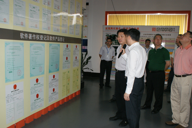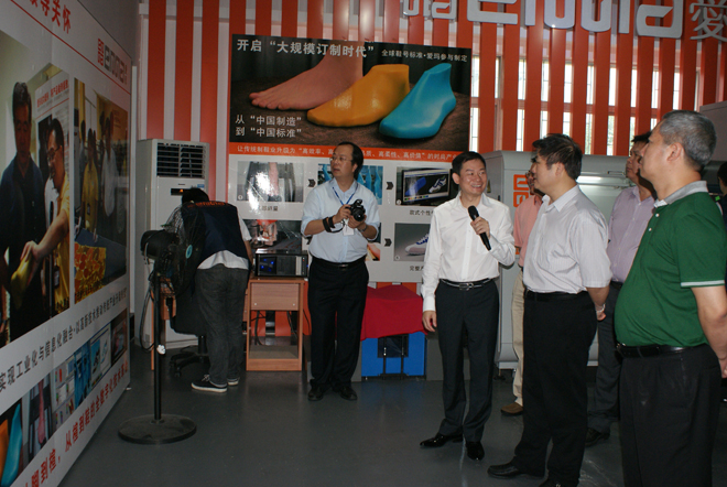 領導們觀看了愛瑪雙刀頭電腦皮革切割機、2012版智能化排版系統、CAD設計軟件、時尚元素輔助生產設備等演示,并對愛瑪生產方式能比傳統生產方式大幅度節省人工、原材料等綜合成本,給予鼓勵和肯定。
