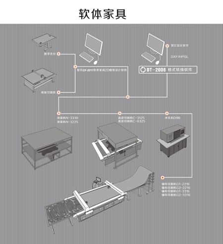 愛瑪數控為軟體家具行業(真皮、超纖、人造革、紡織布藝、海棉貼合紡織品、灰板、特殊材料等)提供從前端樣版數字化設計系統到打樣制作,再到大批量切割、個性化沖孔的完整數字化解決方案。