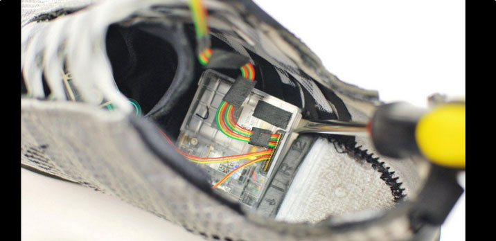 譬如在剛剛過去的2017年CES上,傳感器公司Heapsylon就與英國鞋廠Vivobarefoot 合作推出了一雙智能概念鞋,這雙鞋在鞋跟處足足安裝了2個可移動芯片與4個壓力傳感器……