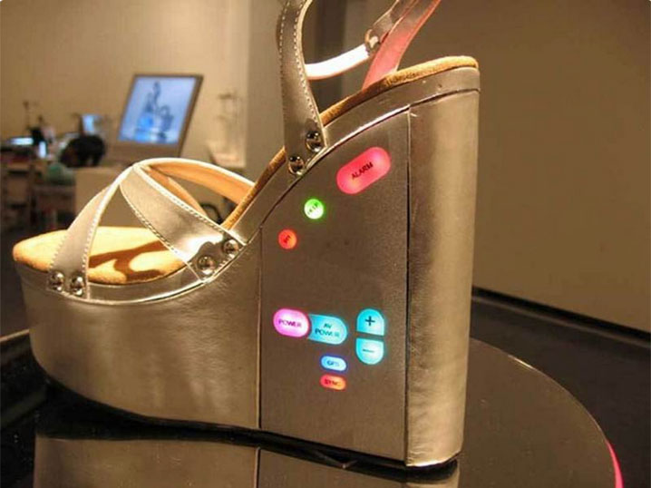 還這雙鞋乍一看就覺得不得了,“內在”更不得了——鞋子自帶GPS,還有可以用來嚇跑襲擊者的警報系統(其實鞋子本身就可以當板磚)。鞋子上還有一個按鈕,在遇到危險時,按下按鈕,鞋子會悄無聲息地向緊急情況處理中心發送自己所在的位置。
