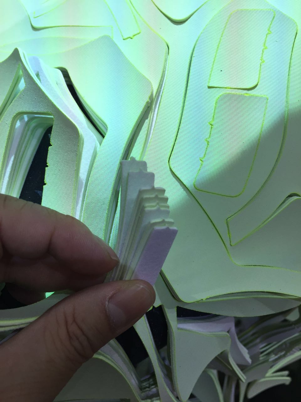 借2017越南國際鞋類、皮革及工業設備展覽會的平臺,在越南全球首次公開亮相,以現場量產體驗方式展示愛瑪第十三項注冊核心技術突破誕生——imax (愛厚)多層裁切技術,可精確、快速裁切柔性工業用材料(人造革、網布、TPU等)常態24MM以內(根據貼合工藝、材料軟硬度不同,4-16層),是以往imore (愛多)技術的翻倍裁切量。