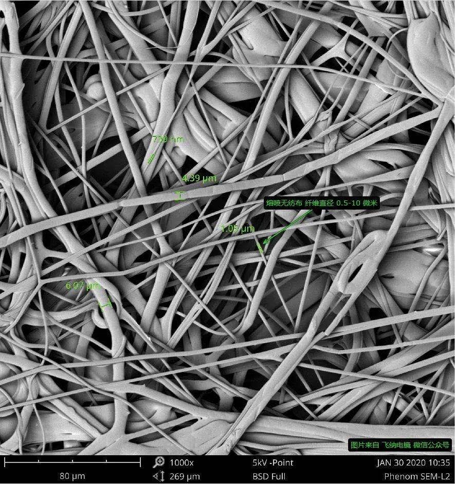 下圖是拍攝的熔噴布結構照片: