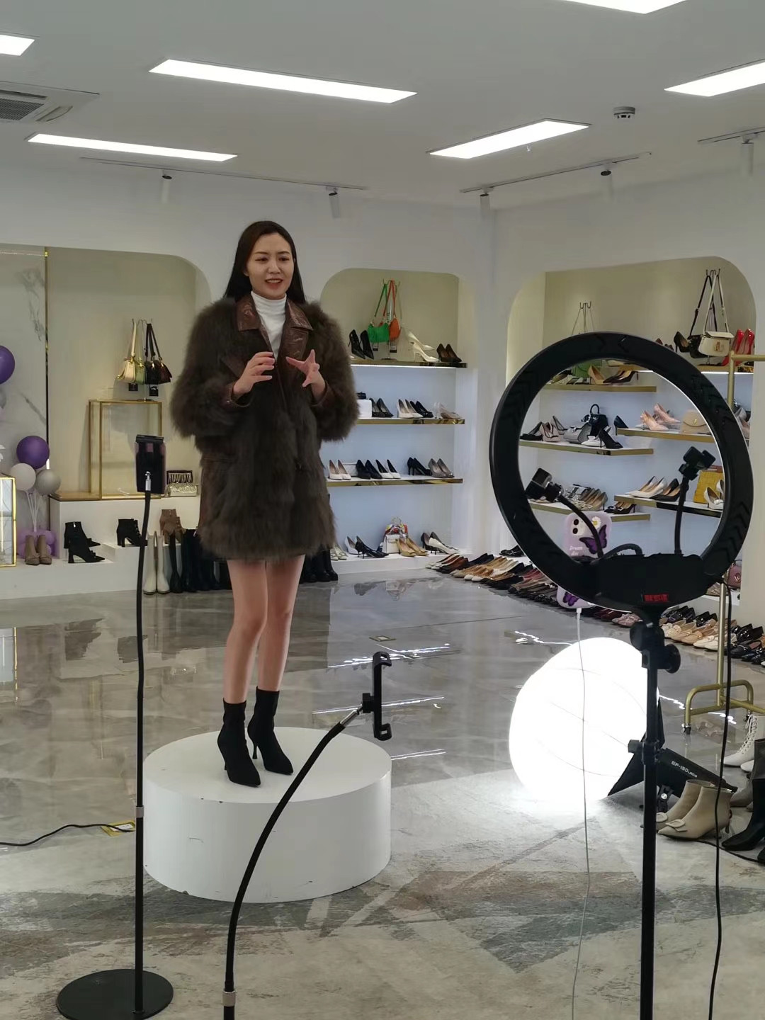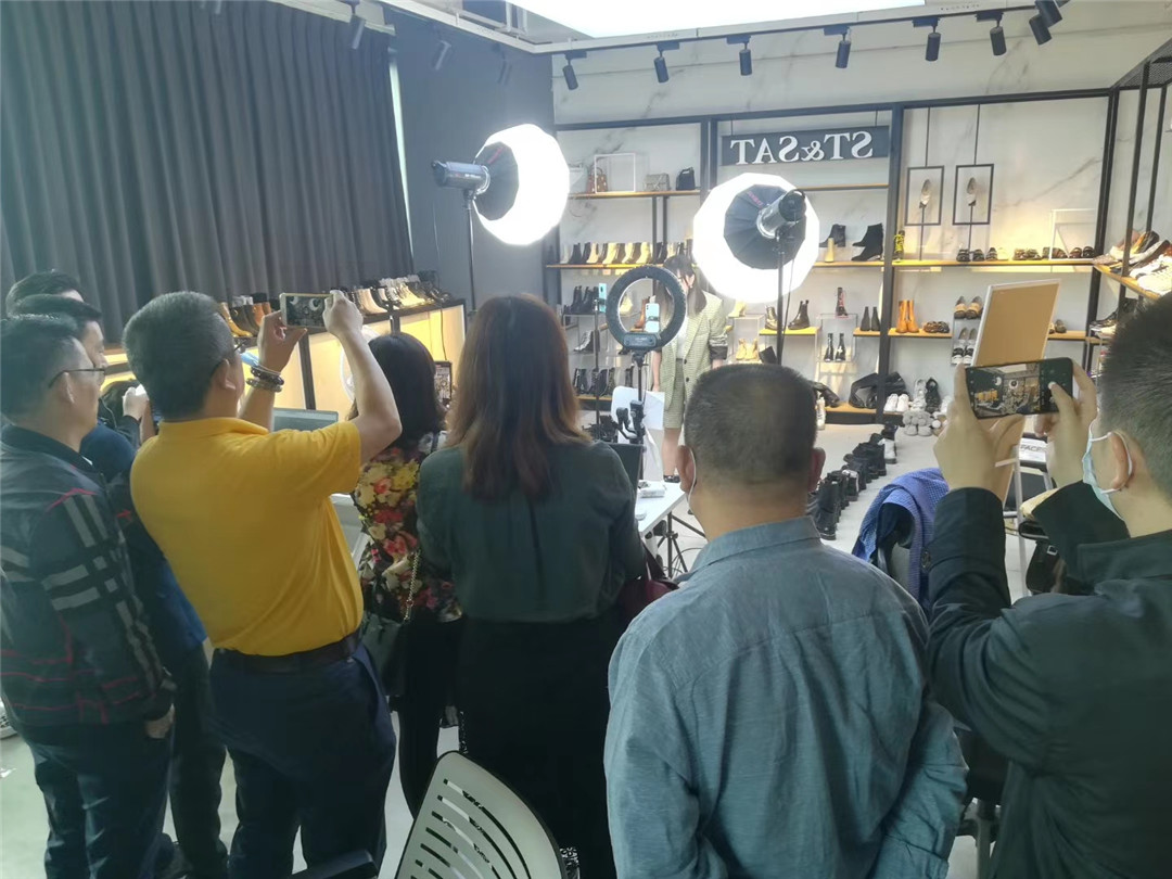 下午,考察團前往杭州新禾聯創數字時尚產業園考察南海鞋協執行會長單位佛山萊思麗實業公司設在這里的新零售直播基地。萊思麗是南海知名骨干鞋企,工廠設在里水,專業生產銷售真皮高檔女鞋,擁有“萊思麗”自有品牌。該公司擁有雄厚的研發生產和銷售能力。隨著市場的不斷變化,幾年前該公司把銷售模式從線下實體店向網絡銷售轉變,在唯品會、天貓等銷售平臺做得出色,使企業每年業績都增長。據公司董事長阮永剛介紹,從2018年底開始,萊思麗開始布局直播帶貨的新零售模式,在杭州打造直播基地。通過兩年的精心打造,目前萊思麗在杭州成功打造了1200平方的直播基地,培養了一批頗具實力的頭部主播,直播銷售產品遍及鞋帽、服裝、箱包、金飾珠寶、化裝品等多個時尚領域,形成了以鞋業為主導,多種時尚產品配套互搭的一條龍直播銷售模式,為企業闖出了一套新銷售模式,使企業在嚴峻的經濟大環境下依然保持上升的發展勢頭。