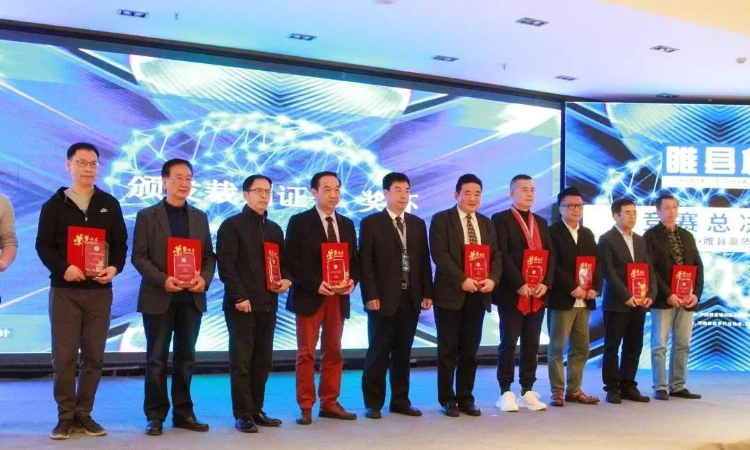 ▲睢縣人民政府縣長曹廣闊宣讀院校組一等獎名單并頒獎