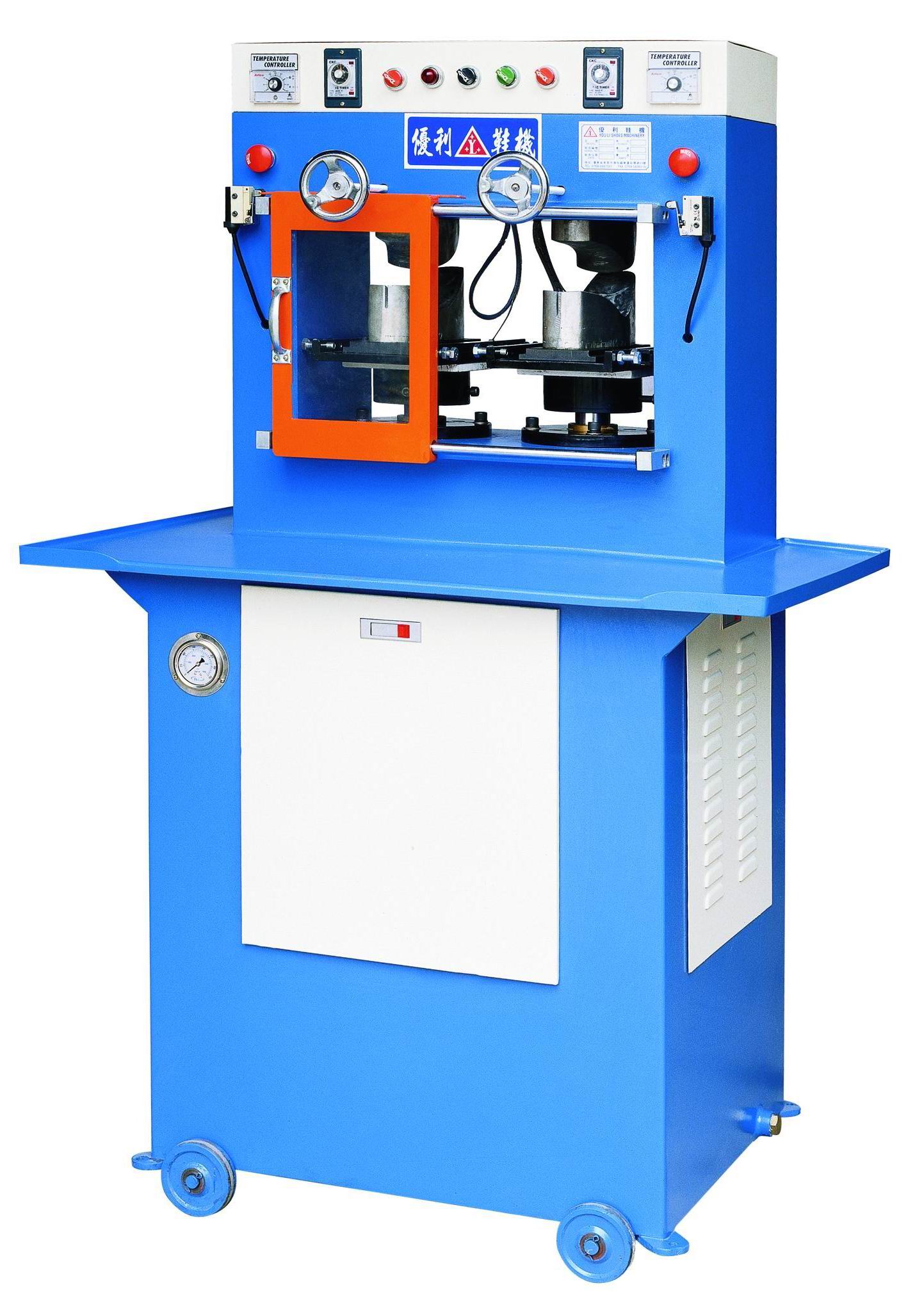 本機適用于運動鞋內底成型,上模帶加溫裝置,定型效果佳。