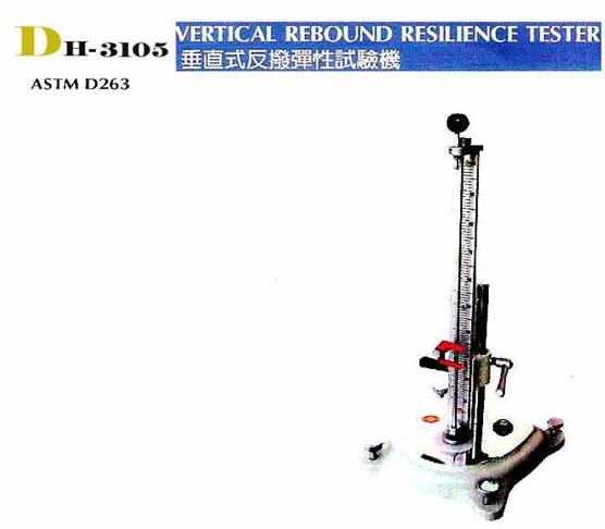 本機系用以落錘垂直自由落下的方式來試驗橡膠的彈性。落錘自特定之高度落下,前三次之結果不計,記錄第4~6次的結果,并求其平均值。