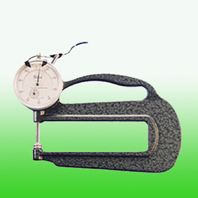 手持表盤式測厚表將測量物夾在測量頭和測量鉆之間進行。按下升降桿測量頭則上升,松開即返回到0點。和百分尺 等測量器相比有操作簡單,測量時間短的特性。測量橡膠、塑膠、織物、紙...等樣本之厚度。