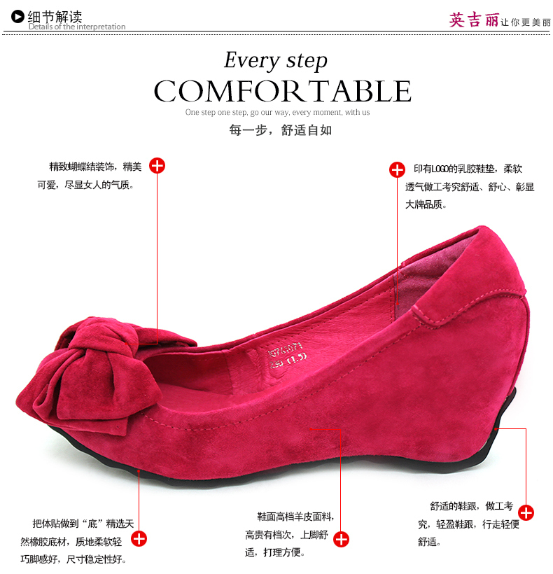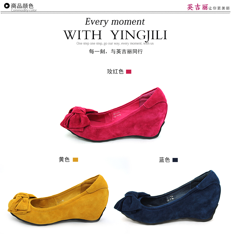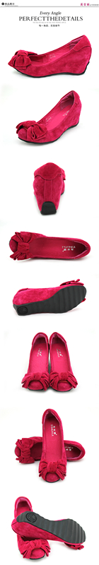 羊猄甜美內增高圓頭淺口蝴蝶結秋季女單鞋