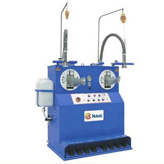 A. 智能 本機型熨燙頭變舊款人工手持式單頭為自動平衡雙懸掛式,省力、操作方便、效率高。雙鋁模具有可左右旋轉360度,每個待處理面都能朝上,即對靴筒的每個部位都能進行燙平,操作方便、快捷。
