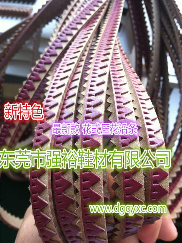 東莞市強(qiáng)裕鞋材有限公司專業(yè)生產(chǎn):PVC沿條、TR沿條、TPR沿條、PVC圍條、真皮沿條、皮漿沿條、拉鏈沿條、珠子沿條、亞克斯、EVA沿條、鋼包頭沿條、電鍍金沿條、金邊沿條、固特異沿條、鞋材沿條、大底邊條、金邊沿條、膠條、塑膠沿條、環(huán)保沿條、家具封邊條。有著經(jīng)驗(yàn)豐富的技術(shù)人員和設(shè)計(jì)團(tuán)隊(duì)。公司本著“高品質(zhì),低價(jià)位,優(yōu)服務(wù)”的宗旨服務(wù)于廣大客戶,與客戶在互惠、互利、互信的基礎(chǔ)上實(shí)現(xiàn)共同進(jìn)步,以良好的信譽(yù),充足的貨源,在未來的發(fā)展中與客戶共創(chuàng)雙贏,共同發(fā)展,攜手創(chuàng)造美好,輝煌的明天!www.dgqyxc.com