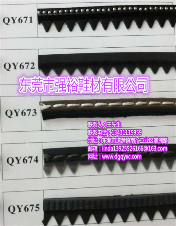 東莞市強(qiáng)裕鞋材有限公司專業(yè)生產(chǎn):PVC沿條、TR沿條、TPR沿條、PVC圍條、真皮沿條、皮漿沿條、拉鏈沿條、珠子沿條、亞克斯、EVA沿條、鋼包頭沿條、電鍍金沿條、金邊沿條、固特異沿條、鞋材沿條、大底邊條、金邊沿條、膠條、塑膠沿條、環(huán)保沿條、家具封邊條。有著經(jīng)驗(yàn)豐富的技術(shù)人員和設(shè)計(jì)團(tuán)隊(duì)。公司本著“高品質(zhì),低價(jià)位,優(yōu)服務(wù)”的宗旨服務(wù)于廣大客戶,與客戶在互惠、互利、互信的基礎(chǔ)上實(shí)現(xiàn)共同進(jìn)步,以良好的信譽(yù),充足的貨源,在未來的發(fā)展中與客戶共創(chuàng)雙贏,共同發(fā)展,攜手創(chuàng)造美好,輝煌的明天!www.dgqyxc.com