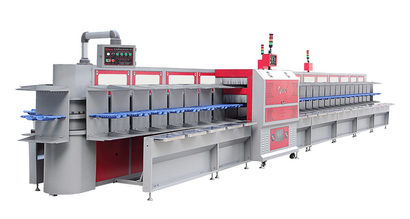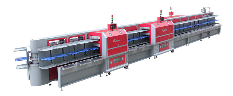 奇裕立體式生產(chǎn)線為巡迴式原理,首尾相連。哪里開始,也在哪里完成最后一道工序。因此制鞋必須的鞋楦,當(dāng)完成一雙鞋的使命后,又可以立即投入下一雙鞋的使用中。